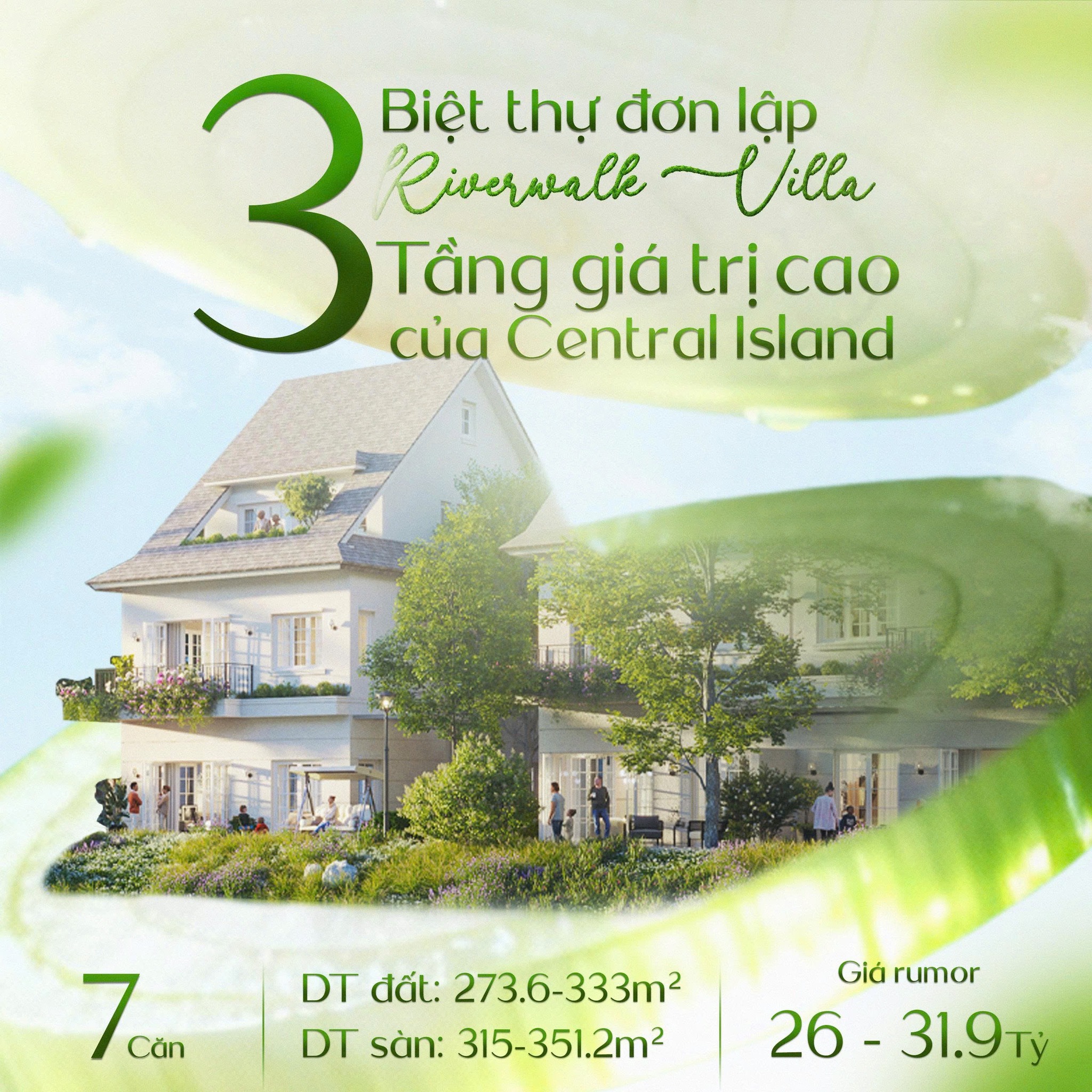 3. Biệt thự đơn lập Riverwalk – Tầng giá trị cao của Central Island