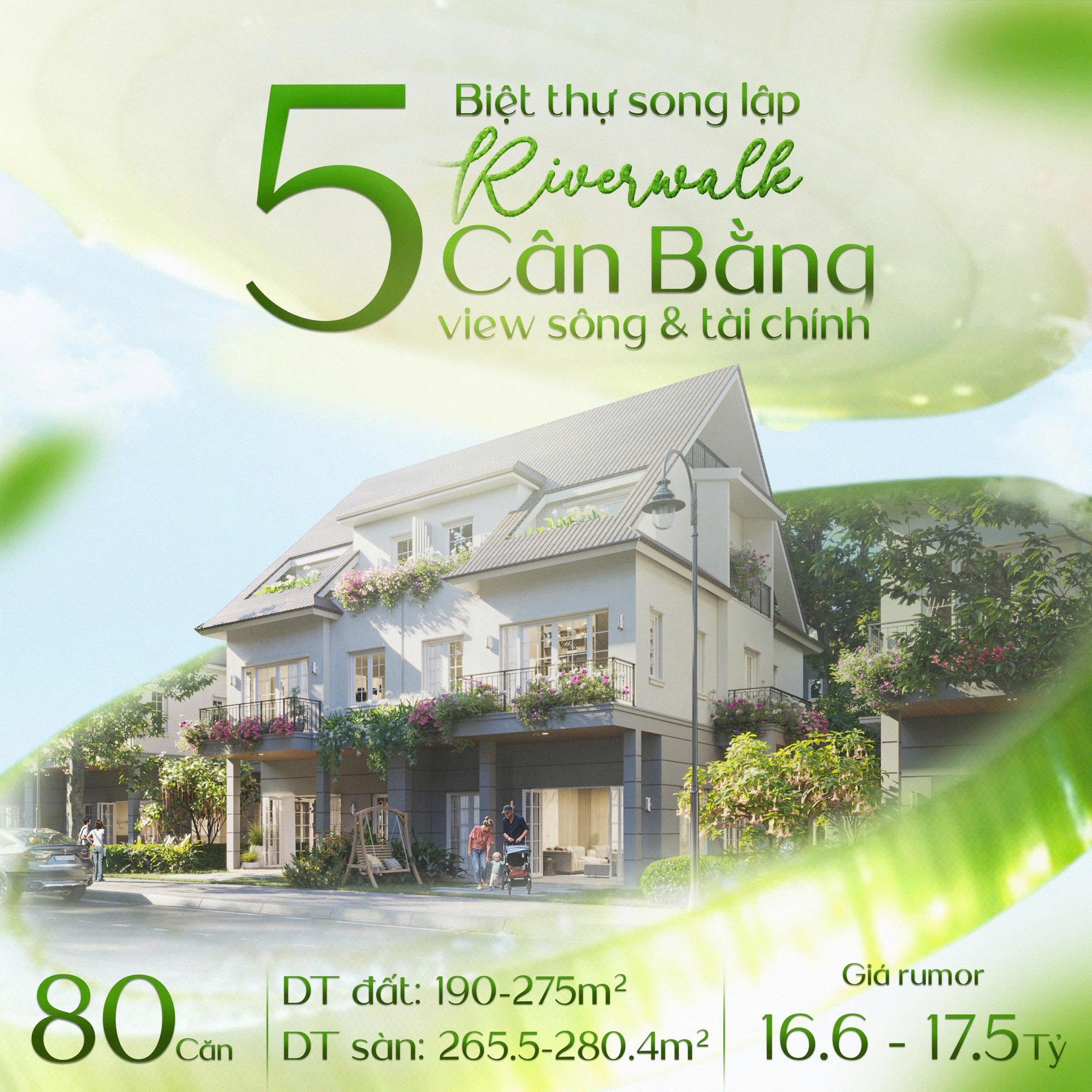 – Muốn ven sông, đẳng cấp cao → lựa chọn Riverwalk song lập/đơn lập & Riverwalk Villa đặc biệt.
