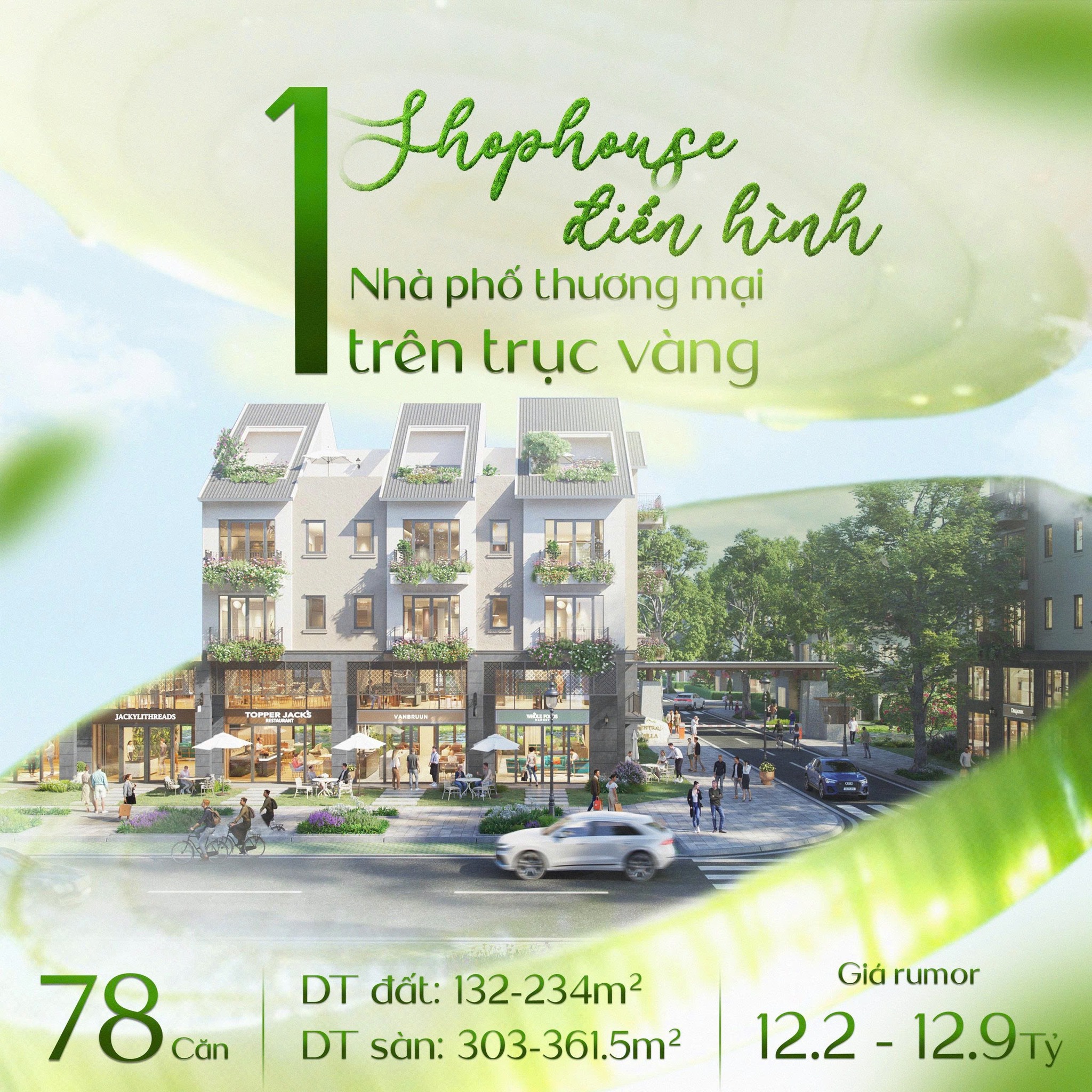 Phù hợp với anh/chị muốn vừa ở, vừa kinh doanh hoặc cho thuê mặt bằng, nằm trên trục chính kết nối quảng trường – công viên – đại lộ.